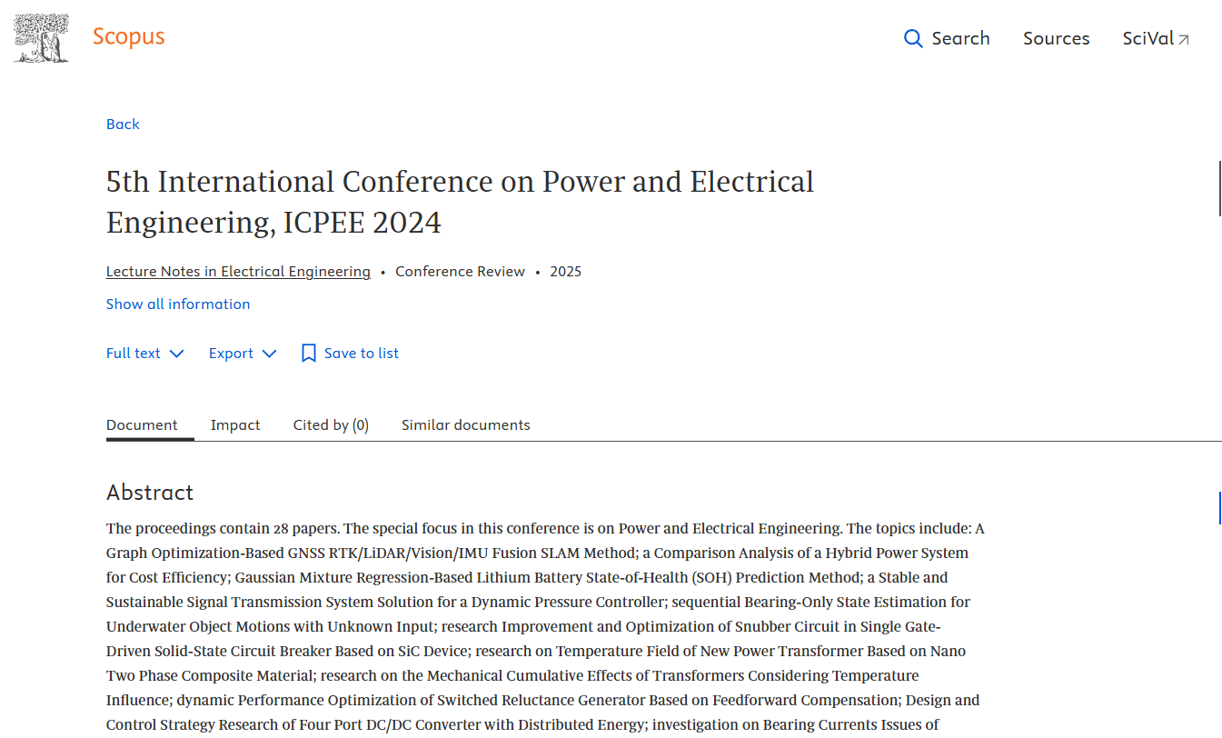 ICPEE 2024 >> Lecture Notes in Electrical Engineering >> Ei Compendex, Scopus